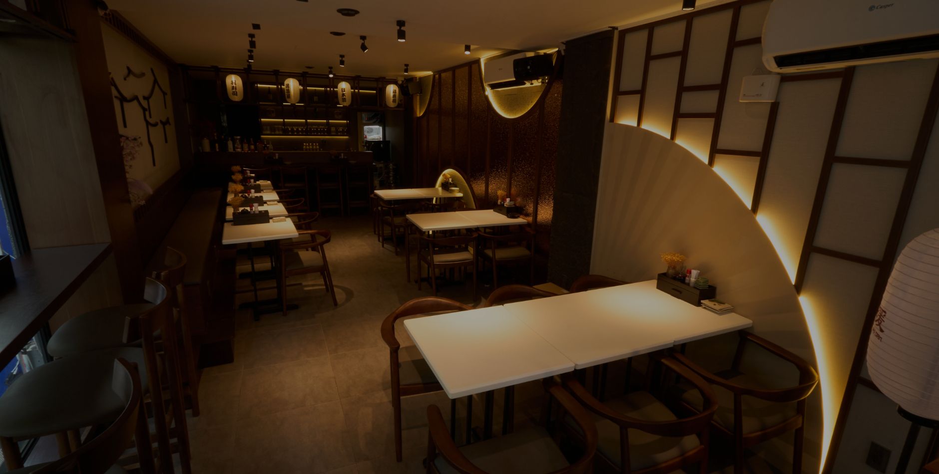 Elegant interiors inspired by Tokyo dining culture — refined, minimal, and serene.